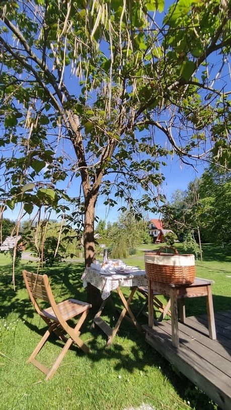 Buđenje uz cvrkut ptica i miris svježeg jutarnjeg zraka, melodičan šum obližnjeg potoka i vjetra u krošnjama. Pogled na obližnje planinske vrhove, neke još pune snijega. Doručak serviran na terasi u košari punoj toplih svježih proizvoda.